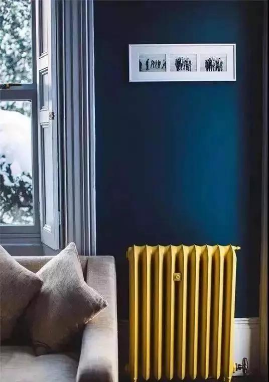 ▲如果你家的墻面是深色,那么可以嘗試一下亮眼的黃色暖氣片。