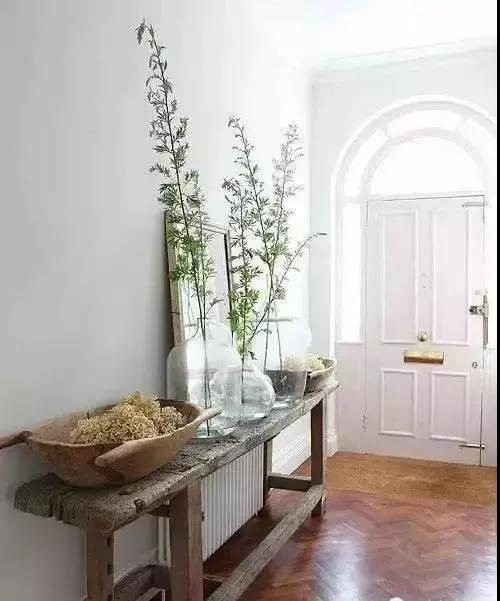 ▲一把長木凳和各種自然氣息濃厚的擺件,滿滿的田園風,走廊上的暖氣片也變得不那么突兀了。